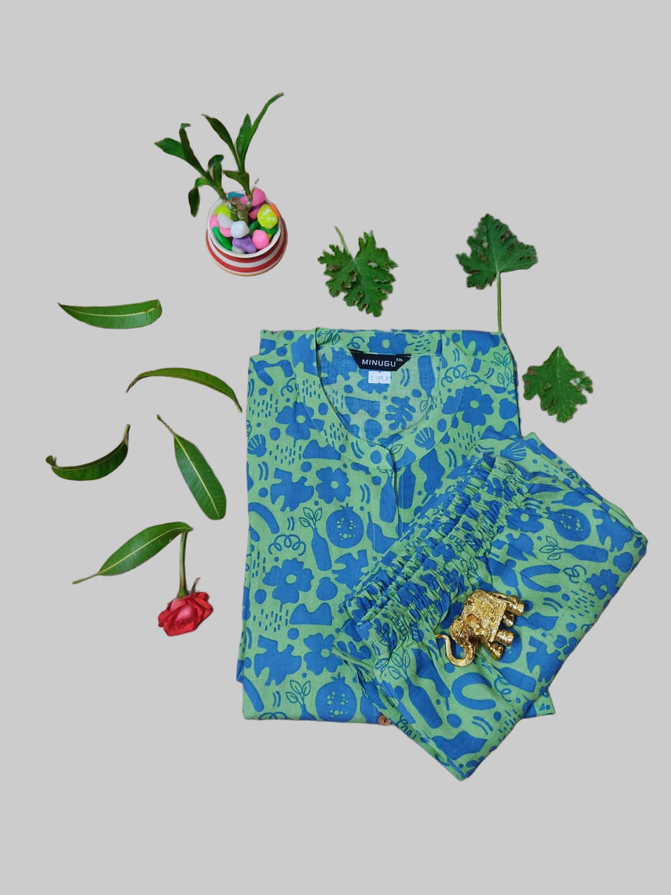 Mustard-Yellow Pure-Cotton Three-Piece Set