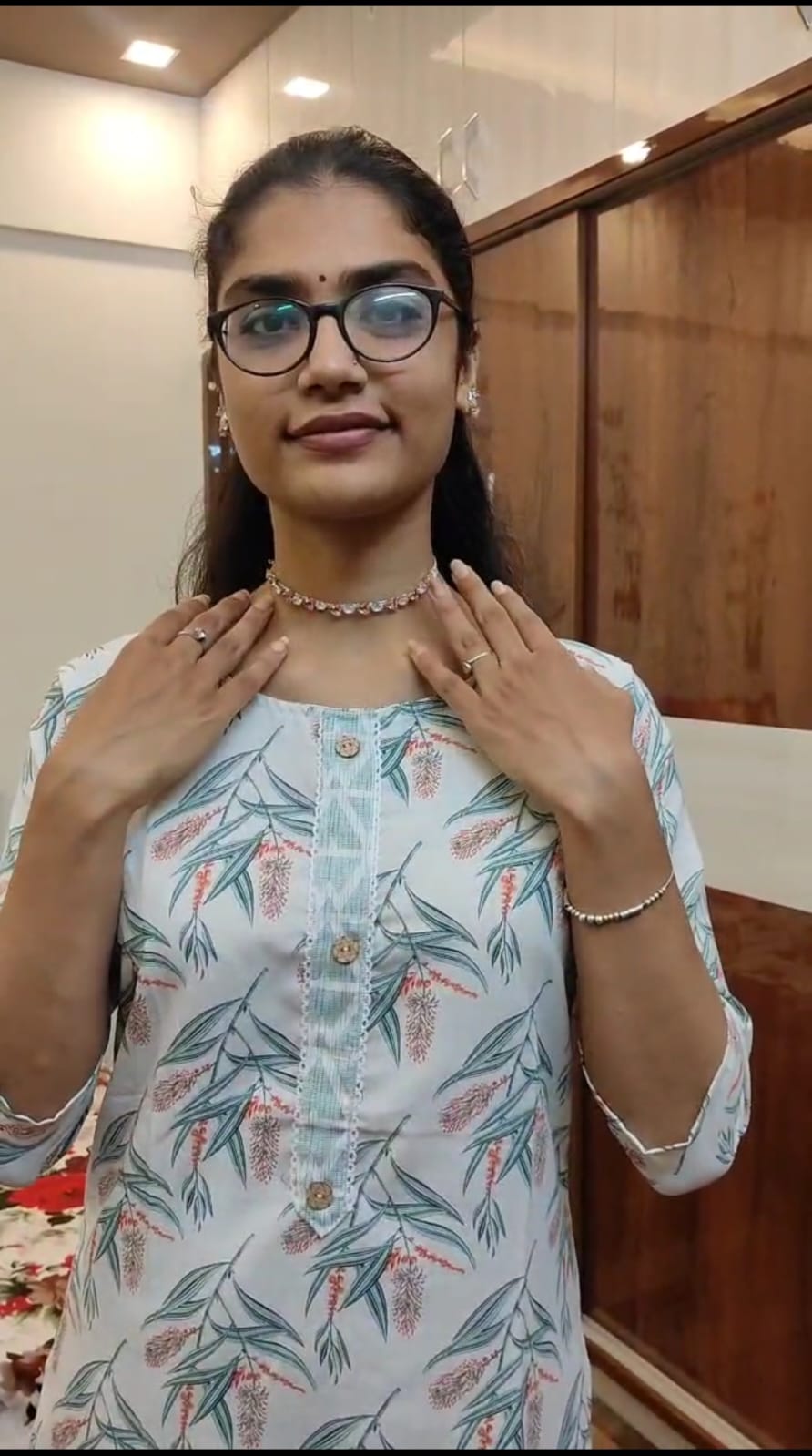 Cotton 2-Piece Kurti with Green and Magenta Floral Print on Off-White Background