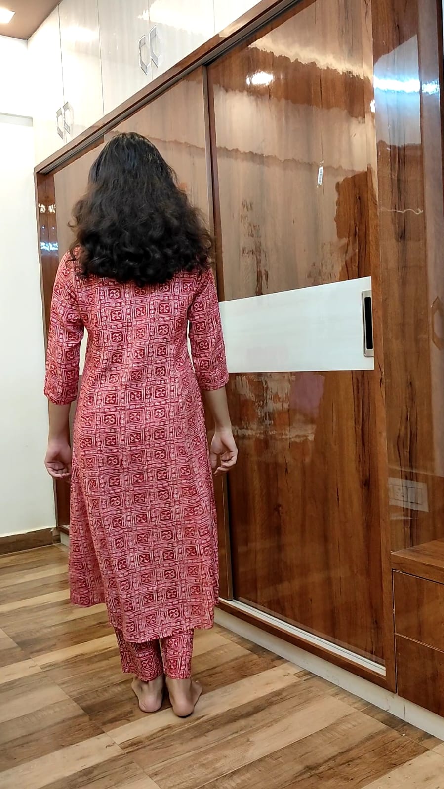 Rayon Two-Piece Set with Magenta and Off-White Floral Prints
