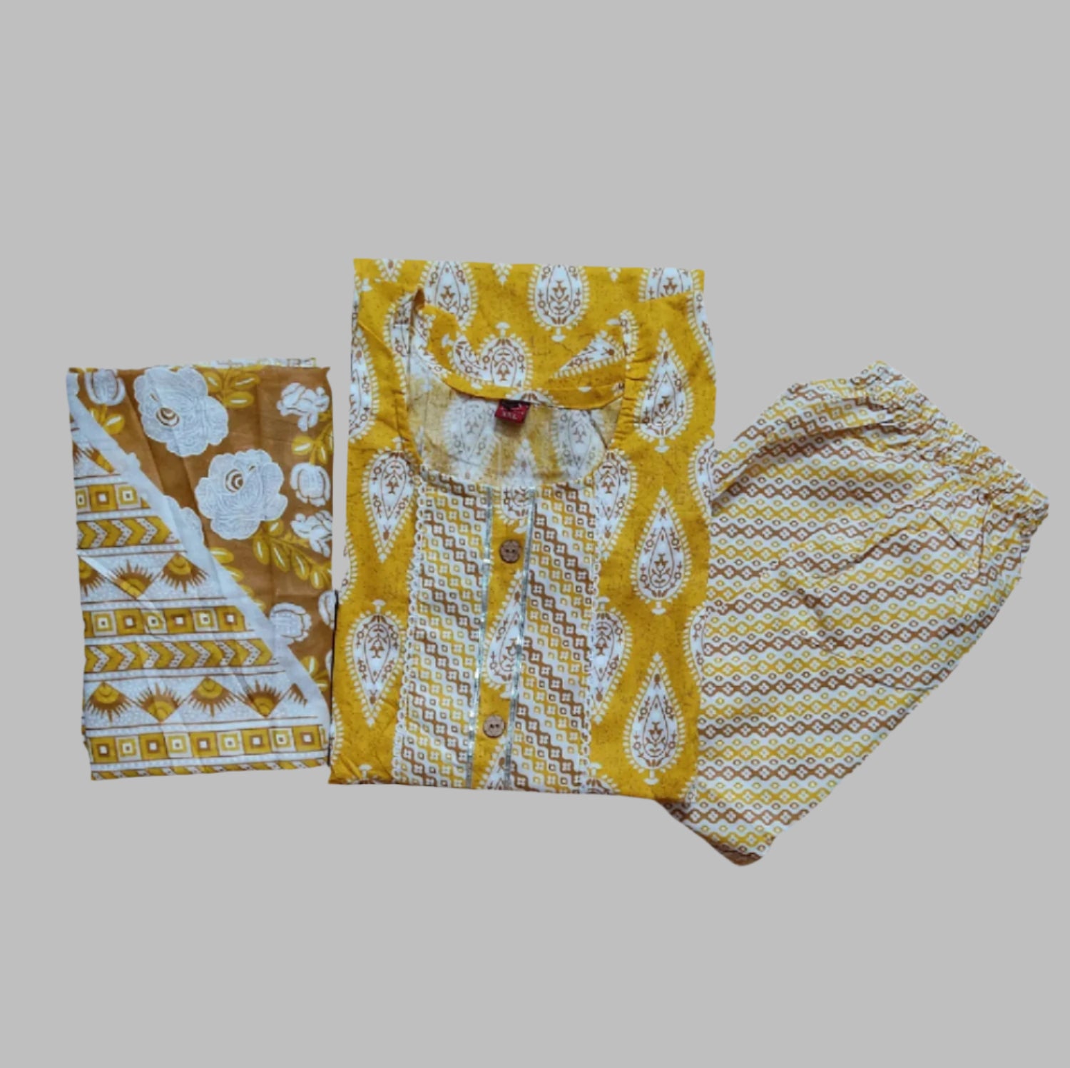 Yellow Pure-Cotton Three-Piece Set
